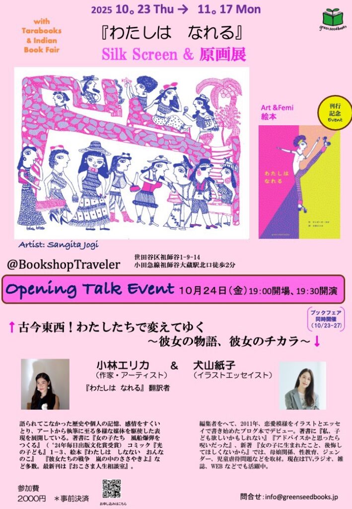 『わたしは なれる』の翻訳をしてくださった作家・アーティストの小林エリカさんと「プレバト」などでもご活躍のイラストエッセイストの犬山紙子さんのブックトークイベントを開きます。