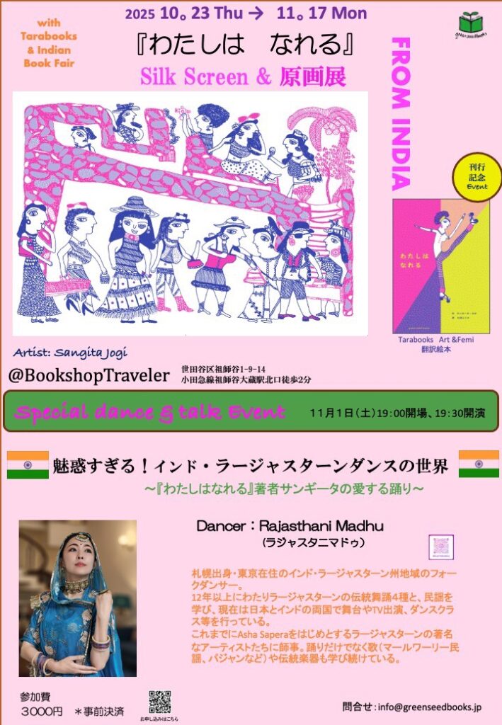 11/1(土) 19時開場【原画展開催記念ダンス&トークイベント】 魅惑すぎる!インド・ラージャスターンダンスの世界〜『わたしはなれる』著者サンギータの愛する踊り〜